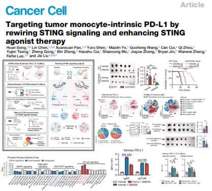 1. Song H, Chen L, Pan X, et al. Targeting tumor monocyte-intrinsic PD-L1 by rewiring STING signaling and enhancing STING agonist therapy. Cancer Cell. 2025;43(3):503-518.e10.(复旦大学附属华山医院 细胞)IF=44.5