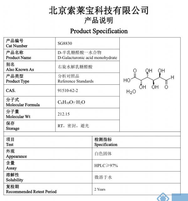 产品名称: D-Galacturonic acid monohydrate;D-半乳糖醛酸一水合物